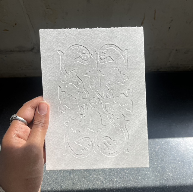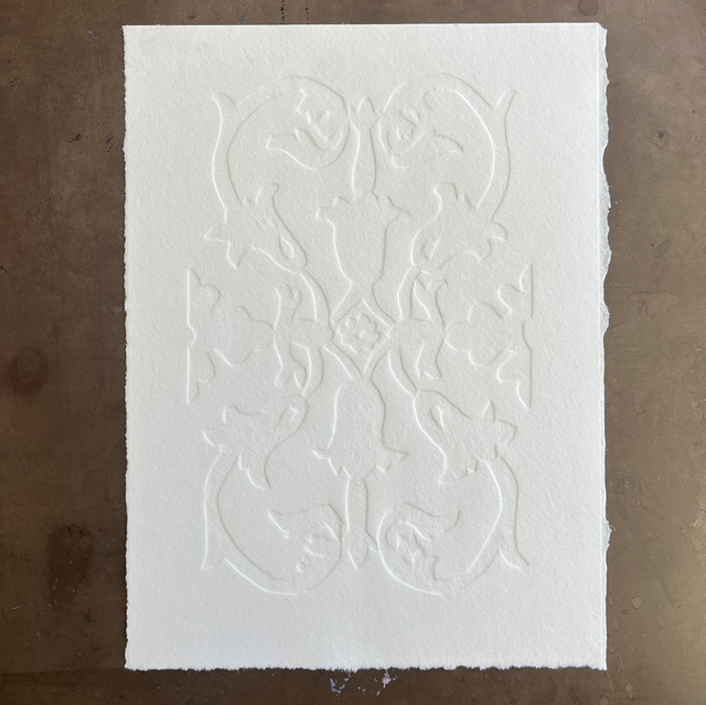 A paper embossing inspired by street ceramics in Cordoba. Somerset paper 250gsm