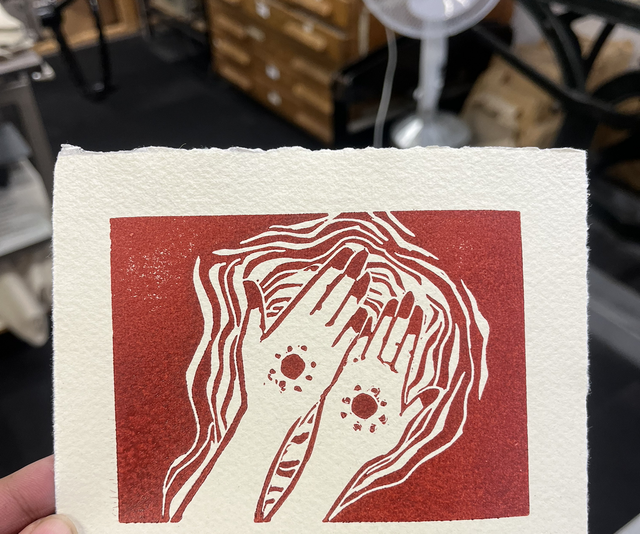Original lino print on smooth khadi paper. Dimmensions 10 x 15cm