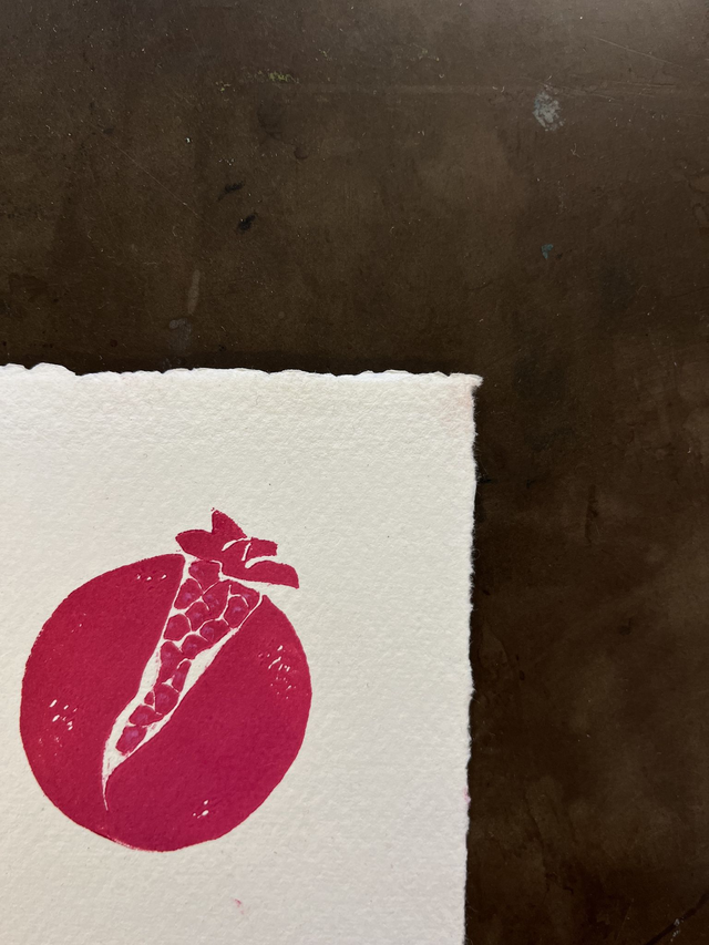 Hand carved lino print on Khadi smooth paper. 100% of proceeds will go to a charity aiding people from Jammu and Kashmir.